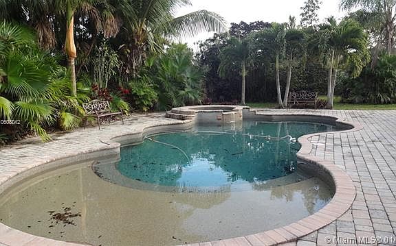 Elegant Redland 3/2 home surrounded by lush landscaping for privacy, lots of fruit trees, palms, shade trees. Approx. 15x40' salt water inground pool/spa, huge screened porch, cozy front porch, 2 garage. Updated kitchen with Quartz counter top, newly renovated master bath with new tile throughout, seamless shower stall, double sink vanity outside and pedestal sink inside, spacious master bedroom with newly renovated walk in closet and 2 other large closets and exterior door to screened patio. Newer 4 ton SEER AC system and newer 40 year shingle roof. Full according shutters on every opening. Builder's acre totally fenced and electric gate. Appointment only.