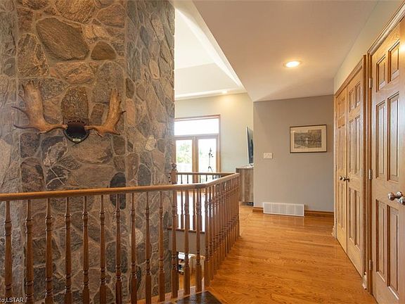 A fabulous 50.8 acre property in West Elgin. Stunning views from every lookout of the 5,000 sq ft custom built ranch. This casual retreat offers heated hardwood floors (geothermal), a large great room with fieldstone fireplace and deck walk-out, country kitchen and dining area and 3 main level bedrooms including an extra large master suite with ensuite. The walkout lower level provides 2 additional bedrooms, craft room, rec room and bar/games area. Out of doors the private paradise provides a 16X32 inground pool, custom 2 stall barn & workshop with walk-in cooler and kennel. Trails run through the ravine, over the creek, past two wetland ponds and through a reforested area overlooking beautiful Ox Creek. A natural paradise away from the crowds with breathtaking beauty as far as the eye can see.