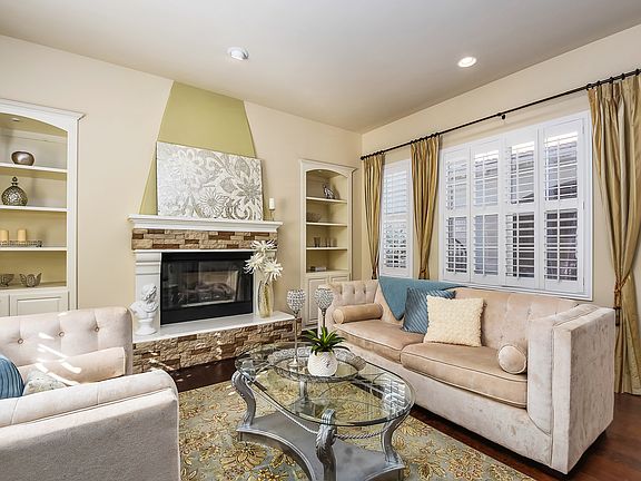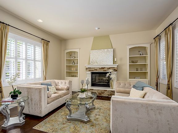 Welcome Home Plantation shutters Neutral Plush Carpet Upstairs Central Vacuum 3 Car Garage Living room Hardwood Flooring Cozy Fireplace Built-in Shelving Elegant Dining Room Perfect for Formal Entertaining Beautiful Chandelier French Doors to Courtyard Desirable Downstairs Bedroom Hardwood flooring Spacious Closet Nearby Full Bathroom Gourmet Kitchen Granite Slab Countertops Custom Tile Backsplash Oversized Center Island Stainless Appliances Built-In Double Ovens 5 Burner Gas Cooktop Casual Dining Area Family Room Hardwood Flooring Ceiling Fan Fireplace with Custom Stone Surround Master Bedroom Bamboo Flooring Ceiling Fan Media Niche Balcony Overlooking the Backyard Master Bathroom His and Hers sinks Built-In Vanity Soaker Tub Spacious Shower with Seat bench Walk-in Closet Spacious 5th bedroom/ Bonus Room Juliet Balcony Neural Plush Carpet Powder Room Backyard Professionally Landscaped New Grass Patio Private HOA Dues $230 Annually