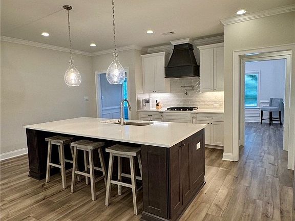 This exquisite Alexandria-plan home, completed in October and still like-new, offers an impressive $62,000 worth of premium upgrades throughout! The gourmet kitchen showcases elegant quartz countertops, a sleek single-bowl stainless undermount sink, stainless steel appliances, and under-cabinet lighting. The nearby walk-in pantry features custom wooden shelving for optimal organization. The LVP flooring throughout creates a seamless flow from room to room and the added 5" crown molding adds architectural interest and sophistication. The primary bedroom suite serves as a private retreat enhanced by a luxurious soaking bathtub and tiled shower with an added rain head fixture. Comfort meets efficiency with spray foam insulation and a clean air enhancement system. The home's exterior is beautifully illuminated with landscape lighting to showcase the elegant look of the painted brick as well as the upgrades to the landscaping to create a complete backyard oasis!