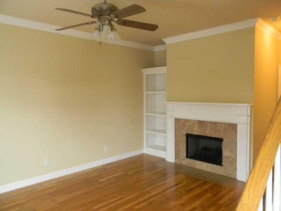 Nice townhome w/sand & finish hrdwd floors down. Lg bedrms w/walk-in closets. Fireplace/gas logs and built-in bk shelves in den. Nice U-shaped kitchen w/separate eating area. Bk deck has privacy fence! Home warranty offered.