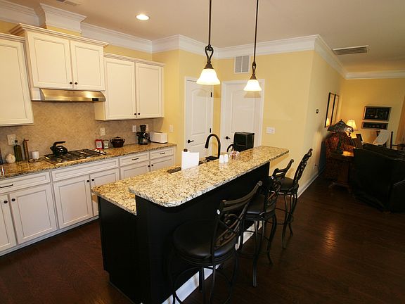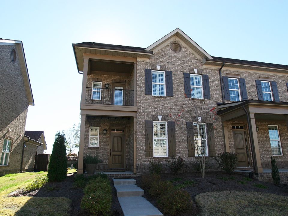 Beautiful full-brick end unit. Like NEW. Sunny, open floor plan. Hardwoods. Gourmet granite kitchen with stainless steel appliances. Plantation shutters throughout. Master bedroom on main floor with luxurious bath. EXCELLENT CONDITION. Upgrades too numerous to list! 2nd floor sitting porch from office area. Large bedroom, bath and bonus room upstairs. Lots of storage. Enclosed patio with natural gas line for grill.