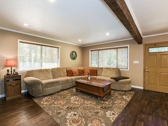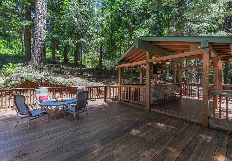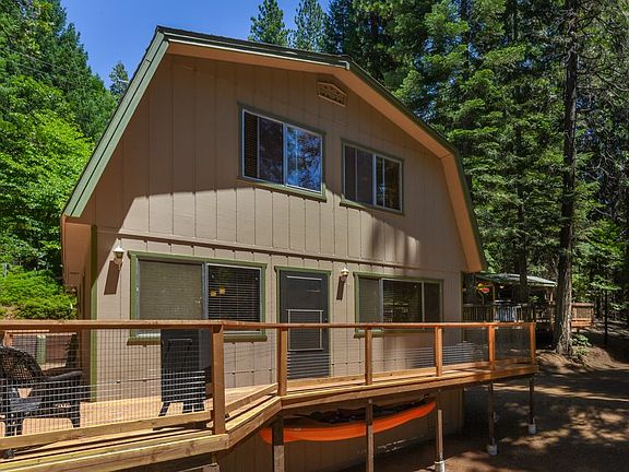 Fabulous mountain retreat tucked away in the pines. This darling 4 bedroom 2 bath cabin offers newly constructed deck, newer exterior paint, updated bathroom & cozy living room opened to kitchen. Outside you will find one of a kind outdoor entertainment area complete with built in bar! There are horseshoes, separate fencing for animals, RV parking, tons of storage & a trail that leads you to the American River canyon! This is a very well laid out 1 acre parcel backing to national forest!