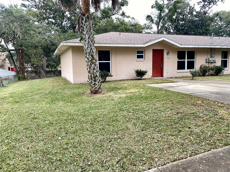 Large 2 bed 2 bath triplex with private driveway and large backyard. Home includes laundry room, eat in kitchen and backyard patio. Central A/C and heat TENANT PAYS UTILITIES. NO SMOKING. Lawn care included