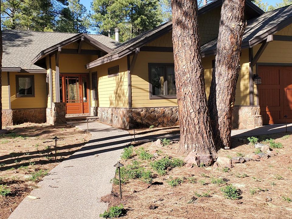 Beautiful home in the gated community of Forest Highlands. Enjoy the cool temperatures and outdoor living Flagstaff has to offer. This home has an indoor wood burning fireplace in the great room for rainy days and a covered outdoor patio with a wood burning fireplace to cozy up to in the evenings. The split floor plan has two master bedrooms with walk in closets. Large open floor plan allows for great entertaining. Please note this home is only available as a summer rental for the months June-August. The minimum rental period is 2 weeks and the rate is $5000.00. All utilities are paid by the landlord and the home is fully furnished along with all kitchen ware, bedding, and towels. Landlord pays for all utilities with short term lease. Available for short-term rental restrictions apply. Must be a Member of FH to rent less than 30days.