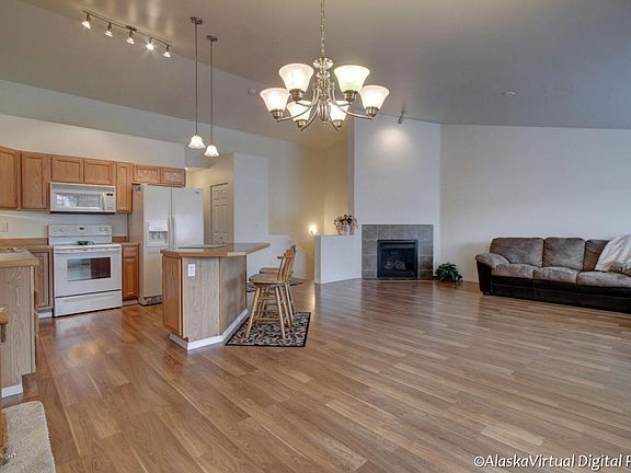 Very nice townhouse ready to move in. New laminate flooring in upstairs living area, new carpet downstairs & in Master bedroom, New paint throughout. Pride of ownership & very well maintained.Upstairs bathroom adjacent to master bedroom. Kitchen is open to the living room w/a nice island. Home includes washer dryer & refrigerator. Great location near JBER, Schools & Hospitals