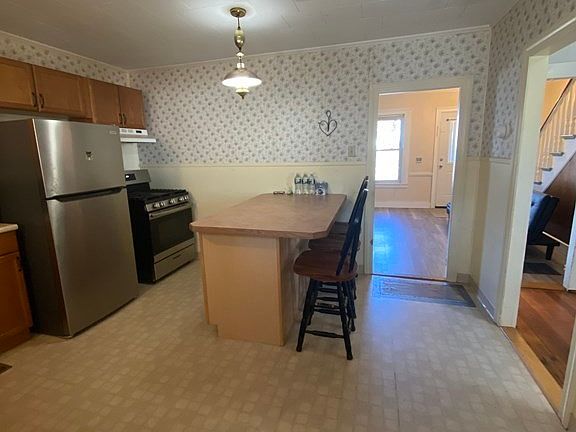 Brick townhouse style end unit, two story with UNFINISHED basement with cement floor. Four bedrooms & full bathroom upstairs. LR, DR & kitchen first floor. Sun porch access from kitchen & has storage below. Fenced in yard. Full unfinished basement with cement floor. Propane heat & cooking. New water heater. 2021 fridge, 2017 furnace, stove, washer/dryer. Pre-approved buyers only.