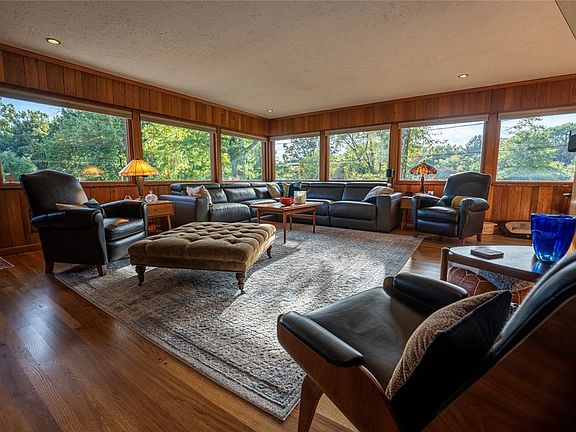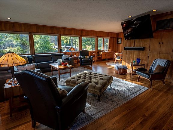 Welcome to 2271 McCrea Road in Churchill borough. This meticulously maintained mid-century Frank Lloyd Wright inspired home is stunning! Enjoy the natural lighting in the living & dining room areas with large Anderson picture windows. Marble accented wood burning fireplace in living room. The walls are the original tongue & groove teak wood. Galley kitchen features updated stainless steel appliances, beautiful backsplash, & quartz counter tops. Custom built spinning hidden bar in the dining room. All 3 bedrooms are spacious & features its own en-suite, Brazilian Koa flooring, & oversized closets. The primary bedroom has a large closet with custom organizer. Cedar lined hall closet. Master bath features a bubble tub & large linen closet. Finished game room & family room has new carpeting. Family room features a beautiful brick accented gas vented fireplace. Laundry room, powder room, & utility room are also on the lower level. Fenced in back yard with beautiful outdoor living space.