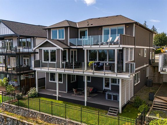 Welcome to 2271 Nicklaus Drive an exquisite 7 bedroom & 6 bathroom home on Bear Mountain. With an impressive 5210 square feet of living space this luxurious residence is perfect for families and those who love to entertain.As you enter you’ll be greeted by an open-concept layout that boasts high ceilings and expansive windows with incredible ocean and mountain views.The gourmet chefs kitchen features top-of-the-line stainless steel appliances, custom cabinetry, and a large island. Upstairs the primary suite is a sanctuary complete with a spacious walk-in closet, a spa-like ensuite that includes a deep soaker tub, dual vanities and a separate glass-enclosed shower. Each of the additional bedrooms are generously sized with ample closet space. Outdoor the space is equally impressive with large decks on all three levels perfect for outdoor dining and entertaining.The 2 bed suite is self contained .Located minutes away from world-class golf courses, parks, schools, dining and shopping.