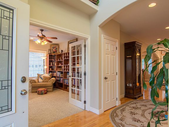 Amazing classic country home nestled at the back of a quiet circular street with amenities that include: 7 spacious bedrooms (and office), 3.5 bathrooms, basement kitchenette, 3 gas fireplaces, covered porch to enjoy the evenings, oversized 4 car pass-through garage & RV parking, smart heating and cooling, central vacuum, block wall (with park access) surrounding mature landscaping with accent lighting, 12x14 shed, and so much more. This home has it all! HOA dues covers parks and walking paths.