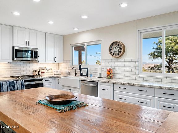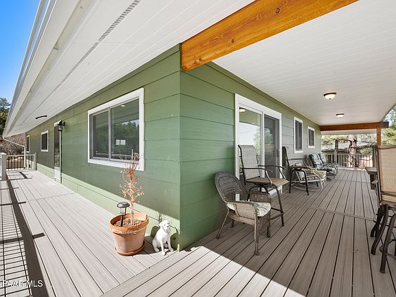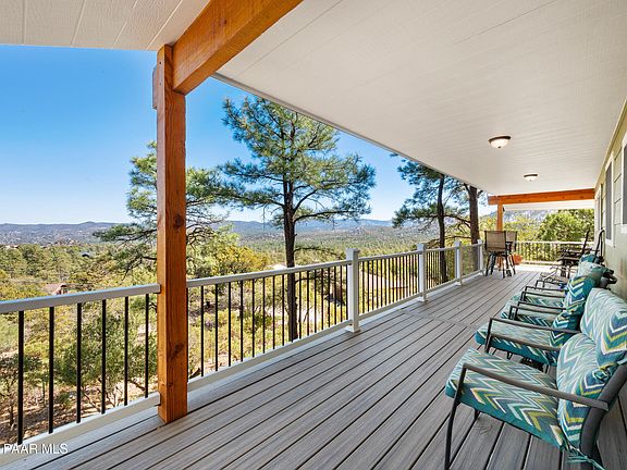 Completely Remodeled home with VIEWS in County Zoning nestled in the Pines of Prescott! No HOA. Beautiful Materials, Breathtaking VIEWS from the new wrap around Trex deck! Paved Access. One Level Living with 4 bedrooms and a potential bedroom downstairs. 2 car attached garage and additional parking spaces. New Windows, Electrical Panel, Roof, Flooring, Hardie Board, Remodeled Bathrooms, Landscaping, Drainage Plan and so much more! Being Sold Fully Furnished.