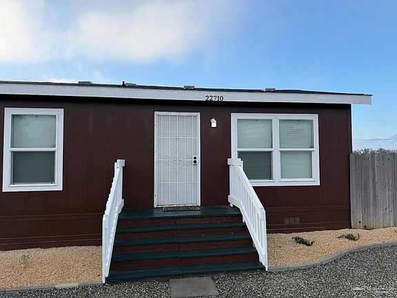 Cute As A Button! Nestled on a private corner lot in Golden Hills East, this 800 SF gem offers 2BD / 2BA, and a spacious .52 acre lot. What's not to love with the bright and airy open concept space for living, dining and gathering. The focal point Kitchen includes an island bar with sink, dishwasher and room to sit and entertain. Cozy Dining area with windows to bring in the warm sun. The primary bedroom has a private bath and walk in closet. Plus, there is an indoor laundry room with a small deck and steps to the backyard. This adorable abode has newer vinyl plank flooring, new paint, toilets, fixtures, window blinds, exterior paint and front yard landscaping. There is a large pull-through gate on the side and plenty of room for your RV or outdoor toys. The backyard is partially fenced for use as a play space or frolicking animals. With its prime location and quiet comfort, this home is tucked away on a peaceful cul-de-sac and a hop-skip-and-a-jump from shopping, dining and freeway access. Come take a look and see why it's not just a house, it's your home!!