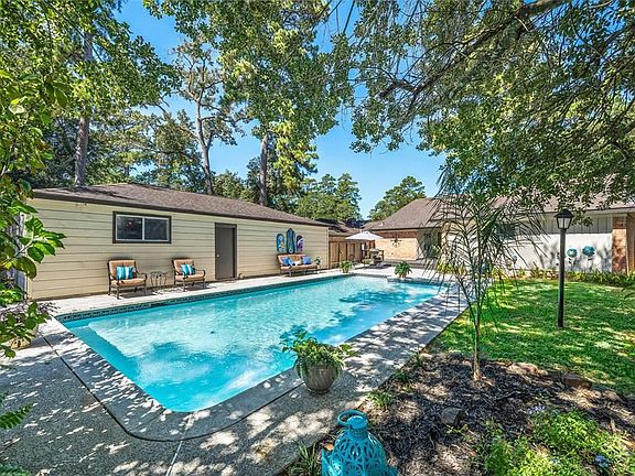 Welcome to 22711 Earlmist Dr. This special gem is located in the well-established Timber Lane subdivision and has it all!! It is a one-story, three bedroom/two bathroom pool home with a HUGE, detached, 4-car tandem garage!! It has LOTS of updates, too (July/August 2022): a totally new HVAC system, a resurfaced pool, beautiful waterproof luxury vinyl-plank flooring throughout the home, new carpet in the bedrooms only, fresh paint, primary bathroom remodel, new granite and backsplash in the kitchen and bathrooms, new hardware throughout, and more!! This home even has spacious study/craft room right off the primary bedroom that looks out into the pool area. The covered back patio has a wooden deck too, so there is plenty of room for pool parties and entertaining! The 4-car garage has a work area with tons of shelving for storage. It even has a bonus shed right behind the garage! No flooding here! Great location, too. Showings begin at the Open House this Saturday, October 1, 1-4.