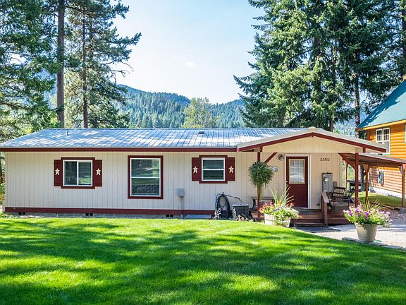 Discover this clean and inviting riverfront home set on idyllic, medium bank frontage in the Ponderosa Estates: This solid manufactured home features single level living, 3 beds, two baths with central heat & air conditioning. The ample sun deck provides expansive views of pastoral Plain and the sparkling Wenatchee River. A handy carport offers storage and/or parking space. Lush lawn and a cozy fire pit area complete this easy care retreat in Plain's most popular recreational community.