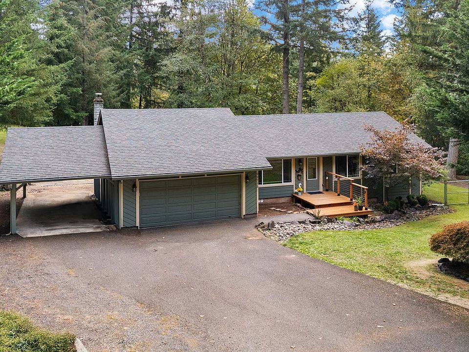 Welcome to your dream home! This delightful 3-bedroom, 2-bath ranch is nestled on over an acre of fully fenced land, offering privacy and plenty of space for all your needs. Inside, enjoy the open and airy feel of vaulted ceilings, beautifully updated bathrooms, and rich solid wood floors that add warmth and character throughout.The home has been thoughtfully updated with a ductless heating and cooling system for year-round comfort and a roof replaced within the last five years for peace of mind. Step onto the new decks, perfect for entertaining or savoring quiet moments in your serene surroundings.The expansive lot provides ample opportunity to add a shop or ADU, making this property as versatile as it is charming. With its modern updates and fenced acreage, this home offers the perfect blend of comfort, style, and potential. Don’t miss out!