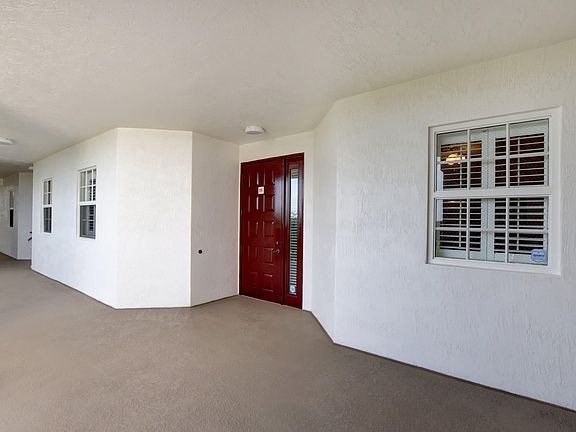 Bright & Sunny w/sweeping 5th FLOOR views! Hurricane Impact Windows/Sliders. 9' ceilings, neutral tile & carpet. Crown molding in living areas, custom molding @ hallway & Bed 3. Kitchen features Almond 42'' cabinets & Solid surface counter tops & bar. Master Bath offers double vanities, separate water closet & jetted tub. Laundry room w/storage, utility sink, 2013 A/C & 2015 W/D. Screened lanai features pull down shades & tropical views of the pool, lush palm trees & balmy breezes. Enjoy the QUIET & SECURITY of a 5TH floor location along w/Gated entry, Secured lobby & Secured Parking UNDER building (Space 8). HEATED resort-style pool. HOA fee includes Cable w/HD Boxes & Premium Channels, Hi Speed WiFi & Alarm Monitoring. 2 Dogs Up to 25lbs are welcome. Central location, 5 minutes to 95!