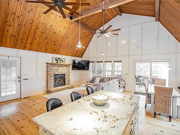 Make your lake life dreams come true with this stunning, fully furnished Springdale retreat. It has a huge deck overlooking Beaver Lake all year long and built for entertaining. Porch wraps around most of the house, providing storybook views of the surrounding natural beauty. Everything in this home has been customized to stand out & provide next-level comfort. The open living area is bathed in natural light with a gas fireplace framed by natural stone, & barn-style vaulted cedar ceilings to match the cedar floors. Stylish kitchen has granite counters, display cabinetry a prep island with seating, gas stove, and stainless appliances. Dining area next to the kitchen. Primary bedroom has 2nd level all to itself, plus an ensuite bath w/clawfoot tub. Two additional bedrooms and 2nd bath off the living area. This home has a proven track record as a successful vacation rental with a 4.84 stars out of 5-star rating on AirBNB. The owner is willing to convey that account to new buyer, on top of all furniture and appliances.