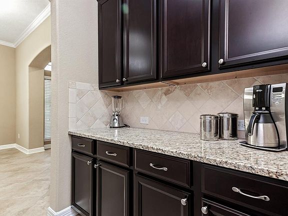 BETTER THAN NEW! STUNNING 1 story w/ split plan offering 4 spacious bedrooms and 3 full baths. Private study with french doors & beautiful architectural windows for detail. Formal dining is large w/ butlers pantry for additional storage & serving. Kitchen is chef's delight! Granite counters w/ bar area large enough for 6 stools! Large island, stainless steel appliances, tumbled travertine backsplash & upgraded Expresso 42'' cabinets. Kitchen is open to large den for ease in entertaining. Den is wired for surround and has doors to extended covered back patio. Oversized 18'' tile floors in main living areas plus wood in study. Romantic master with sitting area and privately set on opposite side of home than secondary bedrooms. Master overlooks covered patio and private backyard with NO BACK NEIGHBORS. Master bath features granite, oversized shower and separate jetted tub. Secondary beds are nicely sized with plenty of storage. Walk to schools and 20 minutes to downtown!