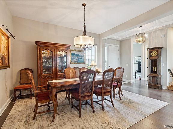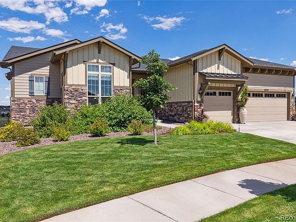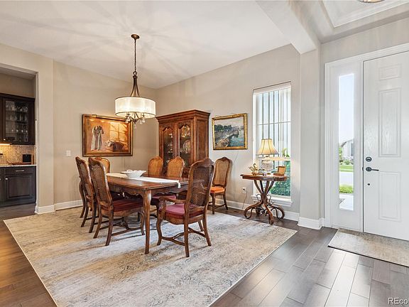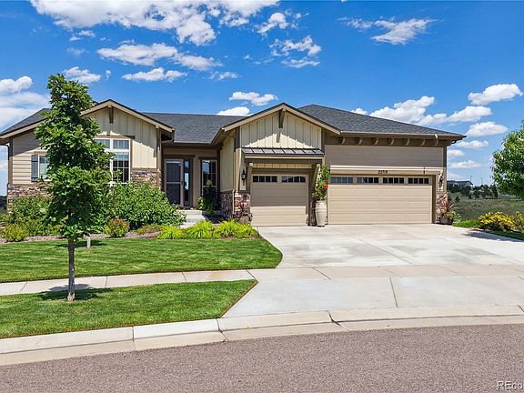 WELCOME TO YOUR NEW LIFESTYLE AT THIS BEAUTIFUL INSPIRATION AT HILLTOP RANCH HOME WITH AMAZING VIEWS OF OPEN SPACE! This Antero Traditional model by Toll Brothers features a highly desirable open floor plan with 10 ft ceilings throughout, plentiful windows, a Great room with stone fireplace & expansive sliding glass doors leading to the deck, a formal dining room with granite butlers pantry. There is a dedicated study at the entrance (or den, if you prefer). The kitchen will become the family gathering place featuring an eat-in area, large center island & counters, 5-burner gas range, upgraded appliances, new glass pendant lights. Enjoy views of open space from the private primary suite with a 5-piece bath, soaking tub, Quartz counters/dual sinks & walk-in closet. The secondary bedroom has an ensuite full bath as well. On the main you also have a powder room and laundry with deep utility sink & cabinets. The 3-car garage is dry walled with plenty of space for your cars and toys. You will relish the serene privacy and views from the covered back patio, with sightings of wildlife. The full walkout basement is readied with rough-in plumbing & drywall finished ceiling. This 55+ active community offers year-round events and a great clubhouse with fitness center, cafe, library, pools/hot tub & courts for tennis, bocce & pickle ball. Conveniently located between Southlands and Parker with quick access to C-470/E4-70, shopping and restaurants. Welcome home!