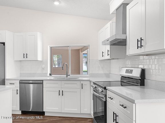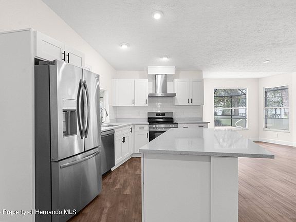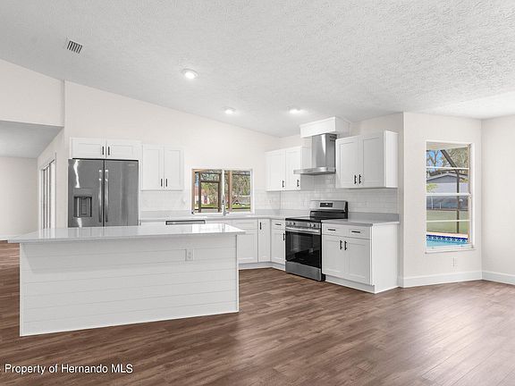 Move in ready updated 3/2/2 pool home nestled away in central spring hill on a .40 acre corner lot. Updated kitchen with quartz counters, new stainless steel appliances, new durable LVP flooring throughout....no carpets! Open split bedroom floor plan with cathedral ceilings. Views & entrances to the pool area from multiple rooms. Updated bathrooms with new vanities & fixtures. Enjoy the Florida weather in the expanded screen enclosed pool area with hookups for your outdoor kitchen. Bring the work vehicle, boat, RV, etc..... No HOA rules or fees! Remediated settlement, all documentation available to obtain insurance