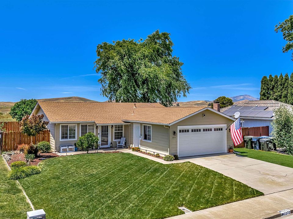 Nestled away down a quiet street with no rear neighbors, you’ll find peace and privacy as you enjoy the views of Mt Diablo and rolling hills from your backyard! This east-facing home is flooded with natural light and features an open layout & updates throughout such as bamboo flooring, new appliances, and solar panels. The kitchen overlooks the backyard and offers bright white cabinetry, stone countertops, and a center island. Luxurious owner’s suite with walk-in closet and updated bath. Freshly landscaped yards, raised garden beds, and side-yard access perfect for RV or boat storage. Home backs to open space which is maintained by the city. No HOA. Near parks, trails & schools. Just minutes to shopping & dining as well as Livermore's vibrant Downtown. Easy access to commuting corridors. Open House Sat & Sun 1-4pm