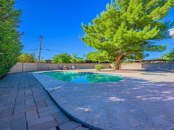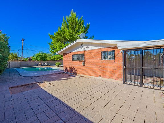 Single story ranch brick home on a corner lot with both pool and spa! Home includes 5 bedrooms and 2 baths. Freshly painted. Living room includes a cozy fireplace. Tiled throughout with new ceiling fans. Huge backyard with lots of shade. Centrally located and close to U of A, Tucson Mall, restaurants, entertainment and transportation.