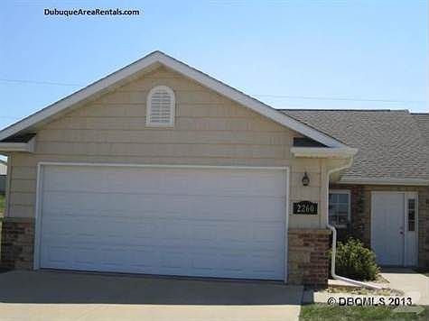 2272 Fawnview Drive Available December 8 $1300 per month, tenants pay own utilities Lawn care and window treatments provided Newer 3 bedroom, 2 bath, 2 car garage townhouse Approximately 1500 sf. Washer and dryer provided. Stainless steel kitchen appliances, open floor plan with vaulted ceilings in great room and master bedroom. Master bath, patio. Walking distance to new schools. Schools are Carver, Roosevelt and Hempstead. Small, indoor pets will be considered for an additional $50 per month. 1 year lease, no indoor smoking, no housing assistance. Showings begin December 1. Contact June at 563-542-1951 or dubuquearearentals@yahoo.com to set up a showing.