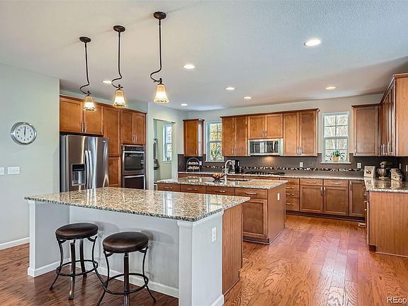 This home is drop dead GORGEOUS! Nestled in the sought-after Flatiron Meadows community, this stunning 5-bedroom, 5-bathroom home offers a perfect blend of luxury, comfort, and convenience, just steps from a Boulder Valley Schools K-8. You have the potential to utilize a main floor In-Law Suite with private garage, entrance, living and bedroom spaces as well as a private bath and private deck with pergola. Situated on a 9000 sq ft lot, the property boasts breathtaking mountain views, a large backyard, and a beautifully landscaped outdoor space complete with a cozy outdoor fireplace on the back patio—ideal for enjoying Colorado's 300+ days of sunshine. Seller owned solar sysem wth brand new panels. Step inside to discover a thoughtfully designed layout, featuring a spacious family room, a versatile loft, and a finished basement perfect for entertainment or additional living space. The heart of the home is the expansive kitchen, outfitted with a 2 large islands, granite countertops, double ovens, and ample storage—tailored for both everyday meals and hosting gatherings. Additional highlights include a 2-car garage plus the separate 1-car garage, a primary suite with luxurious en-suite amenities, and easy access to the nearby Thomas Reservoir for fishing and outdoor recreation, as well as the vibrant Erie Community and Rec Center. Conveniently located just 25 minutes north of downtown Denver with easy access to all Boulder County has to offer, this property offers the perfect balance of tranquility and accessibility. Don’t miss the opportunity to call this exceptional home your own! Seller can close quickly and is motivated! Seller to provide a 1-year Home Warranty at closing.