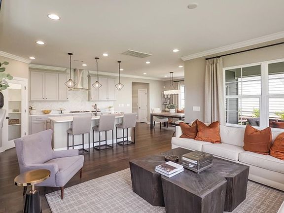The Somerset is a two-story home that features a Great Room that extends effortlessly to the kitchen and casual dining area. The Gourmet kitchen features a wall oven, gas cooktop with a decorative range hood, quartz countertops, and tiled backsplash. A secluded bedroom and a full bath on the main floor is ideal for guests. The second level hosts a loft that adds shared living space and three restful bedrooms including the owner's suite