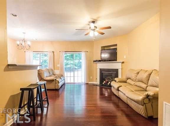 Fantastic end unit Townhouse features an open floorplan with hardwood floors & half bath on main. The living room with fireplace has views to the rear patio & opens to the dining area & kitchen for easy entertaining.The huge master bedroom with large walk-in closet has a spacious ensuite bath with tile floors & accents, separate spa tub & shower, & dual vanities. Two additional large bedrooms & a spacious hall bath help seal the deal. All this plus a one car garage and fantastic location make this an unbeatable combination in a home. Hurry to make this one yours!