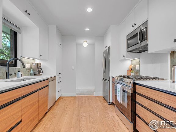 Live the Quintessential Boulder Lifestyle in This Custom Renovated (2022 Completion // Fully Permitted) Mid Century Modern Gem in Central / Old North Boulder - 5 Mins to Pearl Street Shops and Restaurants, 2 Mins to Ideal Market Plaza Amenities + Near Many Parks & Hiking. This Home Recently Underwent a Gut Remodel and Was Finished to a Very High Level of Quality: New 30 Year Malarkey Class III Impact Resistant Roof, New Andersen Windows, New Therma Tru Exterior Doors, New High Efficiency On Demand Water Heater, New Furnace and AC, New Front and Rear Landscaping with New 6 Zone Irrigation System, 3 New Concrete Patios, New Garage Door + Opener, and New Paint. The Interior Boasts Newly Refinished Oak Floors w/ Low VOC Sealant, Level 5 Finish Drywall, Custom Walnut cabinetry with dovetail drawers + Soft Close Doors + Drawers, Crafted by Laak Woodworks, Premier High End Cabinet Maker in Berthoud, New Pental Quartz Counters, Samsung Stainless Steel Appliances + Gas Cooktop, Solid Core Shaker Interior Doors, Recessed Can Lighting, Upgraded Electrical, New Custom Drapery in Living Room, + Blackout Shades in Bedrooms. Fully Insulated with R60 Attic Insulation + Blown in Wall Insulation. Endless Possibilities for Expansion as the Lot is Oversized, Easily Convert to a 2/2, or Move Right into this Turn-Key Modern Home. Not in the Flood Plain!!