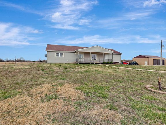 Charming Ranch-Style Home on 9.4 Acres – Just 8 Miles East of Augusta, KS! Welcome to your dream home! This spacious 3,600 sq. ft. ranch-style home just off of blacktop is nestled on 9.4 acres of land, offering a perfect balance of comfort, space, and rural charm. Main Level Features: • Open and inviting living spaces, including a large living room with a cozy wood-burning fireplace. • Spacious kitchen with granite countertops, soft-close cabinets, built-in desk, eating space, and a large pass-through window which opens to the living room. All appliances stay including washer and dryer.. • Formal dining room, perfect for hosting family and friends. • Master suite with a luxurious master bath featuring dual sinks, a walk-in closet, soaker tub, and shower. • Split bedroom plan with two additional bedrooms, each with their own full-size private bath. • Convenient main-floor laundry and an additional half bath for guests. Finished Below-Grade Walkout Basement: • Large family room with a pellet stove that can efficiently heat the entire house. • Bonus room, recently sheet-rocked, ready to be finished to your liking. • Fourth bedroom—spacious and private with large bath including tub and beautifully tiled shower. • Half bath accessible from the family room • Ample storage space, including a large mudroom/storage area. Outdoor Features: • Back deck and covered concrete patio, ideal for relaxing and entertaining. • Plenty of space for horses, cattle, goats, chickens, or other animals—the entire property is fenced! • 30’ x 70’ shop with concrete floor, 200 AMP service ready to be finished out as you desire. Accessible with three 10-foot doors and one 8-foot door and a man door. • Small shed with electricity and two chicken coops. •Welded pipe fencing for cattle plus a separate fenced area for other animals. Recent Updates: • New central heat and air installed in 2023. • New roof in July 2023. This home has factory built floor and roof trusses. The structure was assembled in a climate controlled environment and then set on a basement foundation. You'll love the modern conveniences, ample storage, and peaceful country lifestyle—all just minutes from Augusta and El Dorado. The school bus for Bluestem comes within the cul-de-sac to pick up, while the Douglass school bus picks up at the corner on Haverhill. Don’t miss this rare opportunity—schedule your showing today!