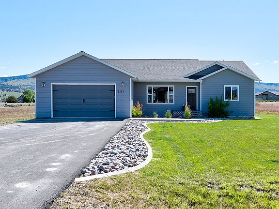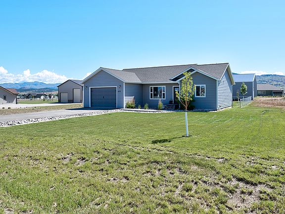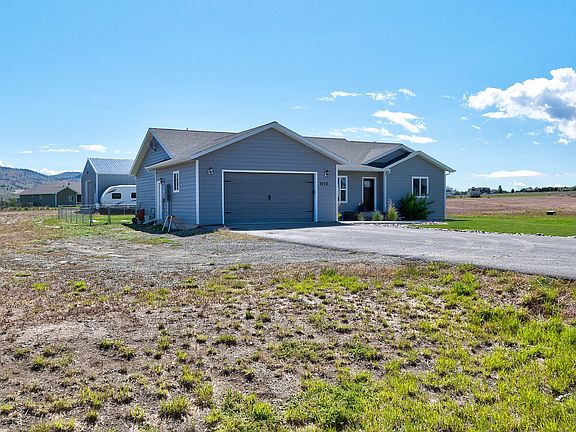 Welcome to your perfect Montana home! This cozy single-level home is set on 2 picturesque acres and features 3 spacious bedrooms and 2 bathrooms. The open layout creates a welcoming atmosphere, with an inviting kitchen that includes a sizable pantry, kitchen island, rustic birch cabinets, and very accessible to the living and dining areas for those who love to cook and entertain. The master bedroom is delightful and good sized with a walk-in closet, walk-in shower with dual shower heads, and dual sink vanity. Step outside to the fenced backyard with a patio, perfect for enjoying the beautiful Montana sunrise. The property also boasts a 40x56 shop with a 12x16 foot automatic door, providing ample space to store all your recreational vehicles and equipment.