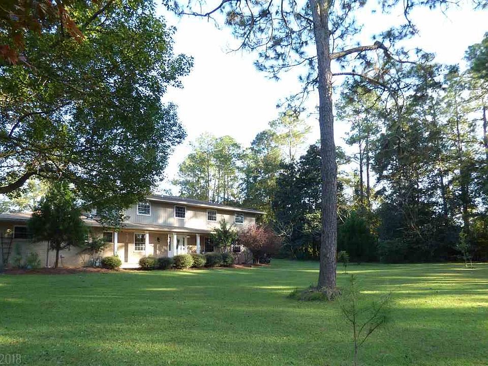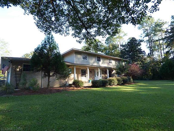 Spacious Home with Pool & Acreage! Lovely 2 story home sitting on 2.2 beautiful acres. Windows abound in this home filling it with natural sun light. 3 bedrooms, 3 baths. Office/craft room located off the master suite that includes 2 closets and overlooks the pool. Master bath includes his & hers separate vanity areas, jetted garden tub, separate walk in shower and water closet. 2nd bath is very large with double vanities & shower/tub combo. 3rd bath with walk in shower. Well lit kitchen with custom built wood cabinets & plenty of them, also features an island with hop up bar. Large dining room with sun room directly off that, both have french doors leading out to the patio & pool area. Built in counter top with full size sink in utility room. 2 outbuildings, both with electric, one large enough for an RV (approx. 16x35), plus a separate play house out back. Small area of back yard around pool is fenced with fire pit, pool is fenced separately. Pool is salt water & heated. Very quaint & quiet country setting yet only 5 minutes into town. Location is very convenient to both Mobile & Pensacola. Just 30 minutes to the beach! Your new home is waiting for you, come fall in love with it today!