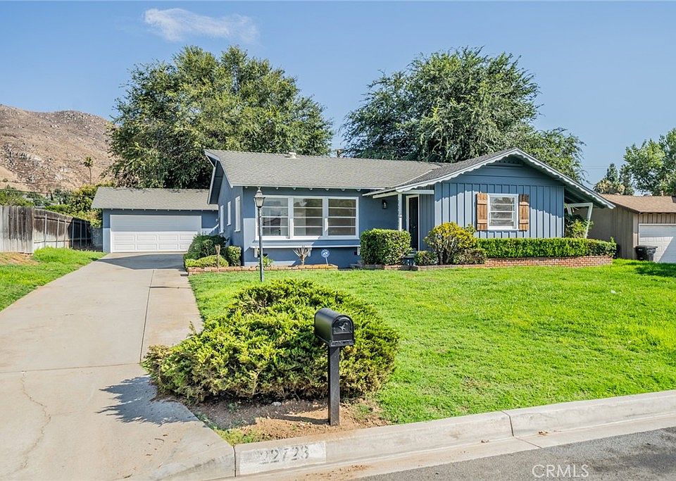 Welcome to a one story home in the city of Grand Terrace with an amazing floor plan!! This home features three bedrooms and two baths on a good size lot 12,245, sqft. Some upgrades have been done including NEW garage door, NEW laminate floor throughout, NEW ceiling fans, NEW carpet in the bedrooms, NEW interior and exterior paint, NEW kitchen cabinets with NEW Quartz Countertops, all NEW stainless-steel appliances, sink, recessed lighting, and new fixtures. This home has a family room with a cozy fireplace and lots of natural lighting. The bathrooms have new vanities, Quartz Countertops, showers, and new fixtures. That's not all, this home has a nice backyard to relax, entertain guests and host family barbecues. Two detached car garage with long driveway, nice front and back landscaping; this home will not last.