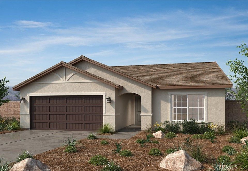 Brand-new single-story neighborhood by KB Home-Cielo at Nuevo Meadows in Nuevo. This home features 4 bedrooms, 2 baths and 2 car garage. Large great room opens up to a nice sized kitchen with white thermofoil cabinets and quartz countertops. Energy star qualified home to help save on your future energy bills. Sunpower solar system. All electric community. Convenient access to I-215. Future community amenities are parks and walking trails. Photo is a rendering of the model. Buyer can either lease or purchase the Solar.