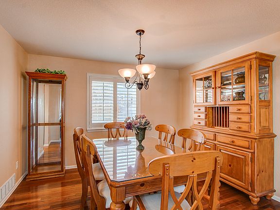 Beautifully maintained and updated home in Saddle Rock Ridge! Live in the highly regarded Cherry Creek School District, perfectly located across from a neighborhood park! Exotic hardwood floors on the main floor and upper hallway that extend into the master bedroom! Gorgeous slab granite counter tops in the open and bright kitchen. Plantation shutters throughout the home. New stamped concrete patio in the backyard. Newer impact resistant roof and hot water heater. Basement has storage and a finished bonus room! You won't want to miss this impeccable home!