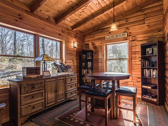 The Lodge at Lane's End is an active rental property and would also make the perfect home away from home. Situated on a beautiful property that backs up to state land, not only are there hiking opportunities right out your back door, you are also just down the road from the beautiful state parks found in the picturesque Hocking Hills. This cabin features 3 bedrooms and 2 full baths with an unfinished walk out lower level that could easily be finished into additional living space. The center fireplace is the focal point of this beautiful cabin and the many amenities from the screened in porch to the covered gazebo for the hot tub and the stone firepit make this the ideal getaway. With newer furnishings this property is being sold turn key and ready to immediately enjoy!