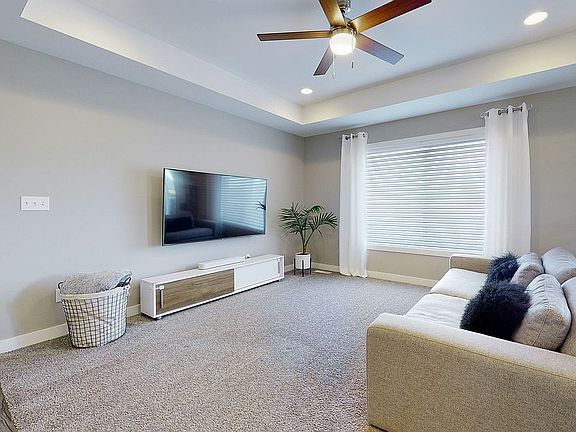 This like new ranch is located in a family-friendly neighborhood close to grocery stores, gas stations, restaurants, and easy highway access. The open concept main level features a bedroom/office off the front entry way with a beautiful shiplap accent wall and walk-in closet. Also off the front entry is the laundry room/drop zone and a full size bath. The open kitchen features a large island, spacious pantry, coffee/breakfast bar, tiled backsplash, granite counters, Frigidaire Gallery appliances, and luxury vinyl plank flooring throughout. The kitchen opens into the carpeted living room with a tray ceiling and plenty of natural light. Levolor remote-controlled blinds are included on all the windows throughout the main floor. The primary bedroom is on the main level off the living room and includes an attached primary bath with tiled floors, double vanity with granite counters, a sizable linen closet and a walk-in closet. The finished lower level has a large family/recreation room with a black shiplap feature wall and a 60" linear Dimplex electric fireplace. A large tiled area with framing and plumbing completed is set up for the perfect basement wet bar and seating area. Also located in the basement is a third bedroom with a large walk-in closet, full bath, and spacious storage area. The three stall garage offers custom shelving and space for cars, tools, and outdoor equipment. Outside you'll find a deck and patio with plenty of room to entertain. The backyard is enclosed by a chain-link fence around the sides, and a newly finished white vinyl privacy fence in the back.