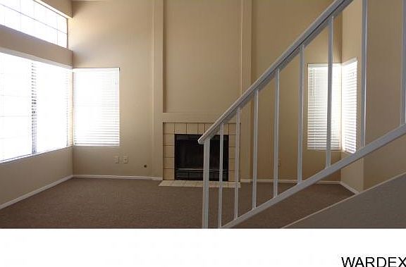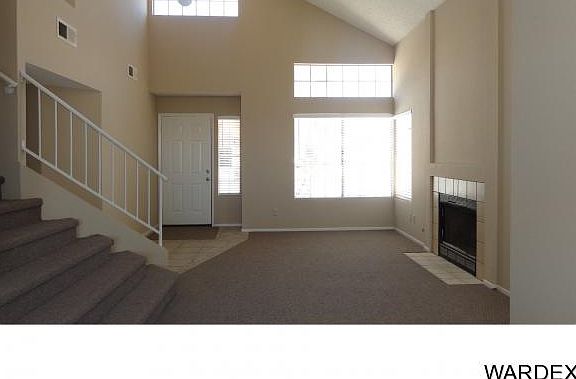 Corner Lot - 2 Story House! 4 bedroom 2.5 bath built in 1989 with 1,744 sq ft of living space. All new paint & carpet throughout, a gas burning fireplace, kitchen comes with all appliances to include a washer & dryer. Covered patio w/view deck off of master bedroom. Great view of the Colorado River and valley. Attached 2 car garage. In quite neighborhood - conveniently close to public transportation, schools, worship, & groceries. Minutes from the Laughlin Casino Strip and from the Colorado River. HOA $166 annual.