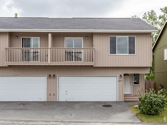 Open concept with large master bedroom on the 2nd floor with a spacious walk in closet. Gas fireplace and balcony. Main floor has two bedrooms with a shared walk through bathroom and access to the 2 car garage. Views of the Chugach Range!