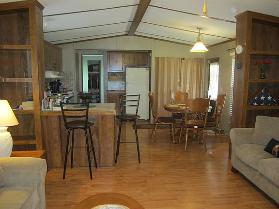 Vaulted ceiling in great rm, open kitchen with bar area, 3 bdrs/2 baths, wood-like laminate throughout, kitchen appliances to remain, large storage bldg. Country setting!!