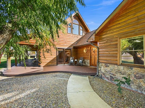 Rustic elegance meets desert charm in this beautiful log home oasis in Grand Junction, Colorado. Nestled amidst the breathtaking vistas of the surrounding mountains lies this truly one-of-a-kind gem. With a generous 2,124 square feet of living space, this three-bedroom, two-bathroom log home is your canvas for a life well-lived. Situated on nearly 4 acres of sprawling Colorado landscape, this property offers endless possibilities for your outdoor dreams. Additional outbuildings on the property open up opportunities for workshops, studios, or storage – let your imagination run wild. Embrace the equestrian lifestyle with the freedom to keep horses on your own land. Enjoy riding in the wide-open spaces of your own backyard. Car enthusiasts and hobbyists, rejoice! A spacious four-car garage provides ample room for your vehicles, storage, and projects. For those who cherish Western Colorado’s outdoor adventures, this property is your gateway to the vast beauty of BLM land. Explore, hike, bike, or ride to your heart's content, right from your doorstep. The log construction, a rarity in this area, exudes warmth and authenticity. Its rich, honey-hued logs stand in stark contrast to the arid surroundings, making this dwelling a visual masterpiece that draws the eye and captures the heart. Step inside, and you'll be greeted by the inviting embrace of a spacious open-concept living area. The warm, natural wood tones create an inviting atmosphere, while the gas fireplace and wood stove provide warmth, comfort and character. Large windows and sliding glass doors frame picturesque views of your sprawling acreage and the many mountains that surround the Grand Valley. The well-appointed kitchen boasts modern conveniences and ample storage while maintaining a rustic feel. It's a perfect place to prepare gourmet meals or gather with loved ones. The bedrooms offer cozy retreats, with the upstairs primary suite providing a sanctuary of relaxation with incredible views off the balcony and an additional loft office space. Outside living spaces offer room to roam, explore, and create lasting memories. Imagine sipping your morning coffee on one of the expansive decks, watching the sunrise paint the surrounding mountains in hues of orange and pink. It's a property that invites you to make it your own, a canvas for your dreams and adventures. Don't miss your chance to own a piece of Colorado's unique beauty and experience the magic of this log home oasis for yourself.