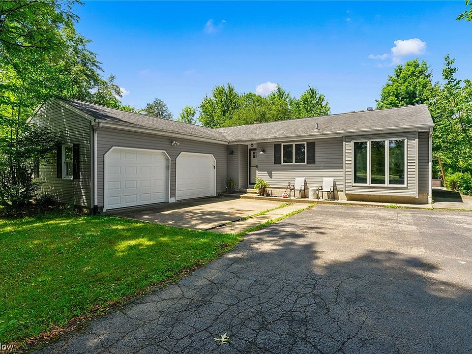 Rare find in Hubbard so don't pass this up! This 2 Bed, 2 Bath ranch has been updated over the years and ready for its new owner. The house sits on the corner with a circular, wrap around driveway. Heated 2 car attached garage with 2 new insulated doors. New vinyl siding and new window windows throughout. Dimensional shingled roof. The front entry way welcomes you into a tiled hallway that leads into the kitchen area. The kitchen offers new vinyl flooring, wood cabinets, butch block laminate countertops and tile backsplash. The dining room has plenty of space for a large table, new flooring continued throughout and tons of nature light. The large living room is the ultimate cozy entertaining space with wood beams, new flooring, fireplace and a back door access to a patio area and a partially fenced in back yard. The master suite offers great closet space with a large vanity top area and another private tucked away bathroom with a walk-in shower. Another bedroom with carpet and a double closet. Full bathroom has been updated with tub and tile walls, vanity and tile flooring. 1st floor laundry/mudroom with access to the 2 car garage. Basement has tons of space with high ceilings. Basement seems to be waterproofed by a previous owner. 200-amp service. Water softener. Well and septic. Glass block windows. Coitsville Township, Mahoning County, Hubbard School District. This house will not last! Schedule today!!