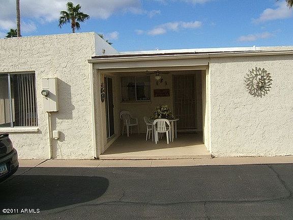 Updated single level condo in quiet community. Located near Painted Mountain golf course, loop 202, shopping and heart of Mesa. This two bedroom unit features large living room and formal dining room. On the greenbelt, there is a nice South facing patio to enjoy the beautiful winter sunshine. On the East side is another covered patio and utility area. The 2 car garage faces North and offers extra storage if necessary. The master bedroom has a walk-in closet and the master bath is handicap accessable with a shower. The kitchen has corian countertops and sink, smooth top electric range, microwave, dishwasher and a pantry. There is tile in the kitchen, bathrooms, and halls and the remainder is carpet. There is a newer Trane heat pump and the property has been used lightly by winter visitors
