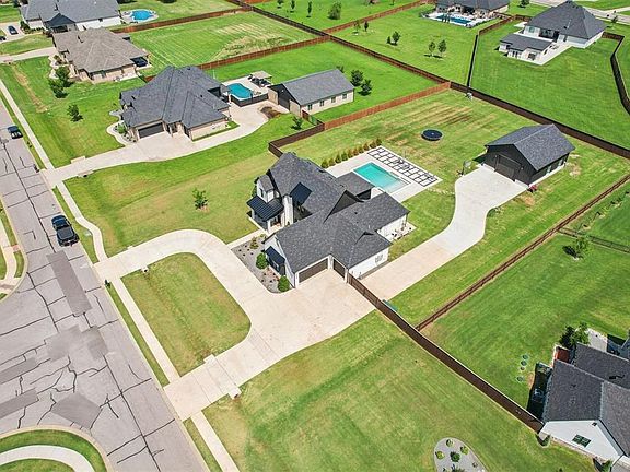 Welcome to this exceptional Edmond property where luxury and practicality meet! Located in a private gated community, this spacious home offers peace of mind, upscale amenities, and thoughtful design throughout. Seller has completed over $500k in upgrades. Enjoy your own saltwater heated pool, whole-home generator, and a 6–8 person storm shelter—combining comfort, safety, and year-round relaxation. Car enthusiasts and hobbyists will love the 30x40 insulated shop complete with a 16-ft overhead door and full HVAC system—ideal for projects, storage, or business use. A circular driveway adds convenience and curb appeal. Inside, the home offers 4 true bedrooms plus an office that can easily serve as a 5th bedroom or flex space. The split floor plan delivers privacy and flow, with high-end finishes throughout. The gourmet kitchen is a chef’s dream with upgraded countertops, stainless steel appliances, a large island, and a butler’s pantry for added storage and prep space. The primary suite is a relaxing retreat with a spa-like bathroom, while the secondary bedrooms are spacious and thoughtfully designed. Upstairs, a large bonus living area provides room for a game room, media space, or guest suite, and includes a custom-built walk-in closet for exceptional storage and organization. Step outside to your backyard oasis, where the covered patio features a motorized privacy screen, allowing you to enjoy the outdoors bug-free in comfort and shade. Set on a beautifully landscaped 1- acre lot in a quiet, sought-after area of Edmond, this home is the perfect blend of elegance, function, and privacy. Don’t miss the chance to make it yours!