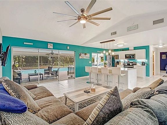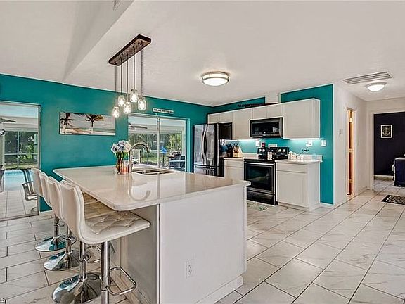 Come see this remodeled POOL home located in Southeast Cape Coral in stunning quiet neighborhood! The home offers two bedrooms with a split floor plan a pool/guest bathroom and a master bathroom. A large open living area with a remodeled open kitchen Island and gorgeous white quartz counter tops overlooking the large screened in Lanai and pool area. New Tile through out! Close to shopping, Everest boat ramp, downtown Cape Coral and downtown Fort Myers.