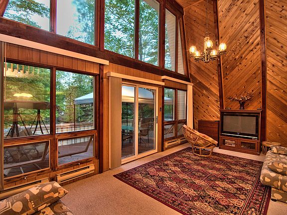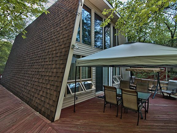 Perfect to rent or the perfect getaway retreat home in a private four season Gold Star amenity filled community! Conveniently located a few hundred feet from the main beach/lake and tennis/pickle ball courts.This lovely home boasts a wooded lot and a deck to take in the beauty of nature. Featured are tongue in groove woodwork throughout the home. This 3 bedroom 1.5 bath home can be your place of relaxation to get away from it all.- The large unfinished basement with outside entrance can be transformed to whatever your heart's desire-family room, extra bedroom, or a game room. Amenities include lakes, beaches, pools, clubhouse with restaurant/pub, golf course, ski hill, tennis, pickle ball, indoor recreation complete with game room, fitness center, library and arcade.