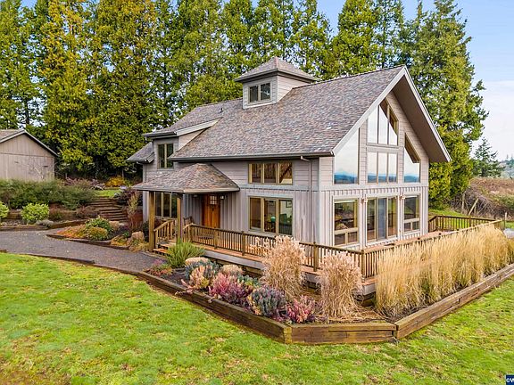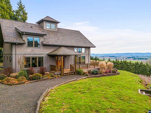 The Bellevue Cross Vineyard located in the McMinnville A.V.A. This property includes 5.34 acres of Pinot Noir, 4.15 acres of Pinot Gris and 2.23 acres of Pino Blanc. The beautiful home is timber framed with exposed wood throughout. 3 beds, 2 baths and energy efficient with structural insulated panels. Enjoy the stunning view from the living room with floor to ceiling windows including an upper loft for a birds eye view of the vineyard. Large shop and 3 car garage. Opportunity for tasting room or Airbnb.