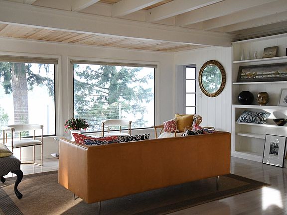 This secluded property is an expression of Northwest beauty in its most elemental form! High above the west passage, 2.74 acres of waterfront--the Olympics to the San Juan's--a breathtaking spectacle, changing hourly! The house is simplicity itself--2 bdrms., 2 3/4 baths, and guest studio--with a full length deck that extends into the sunset. Partially finished basement has 10' ceilings and views.